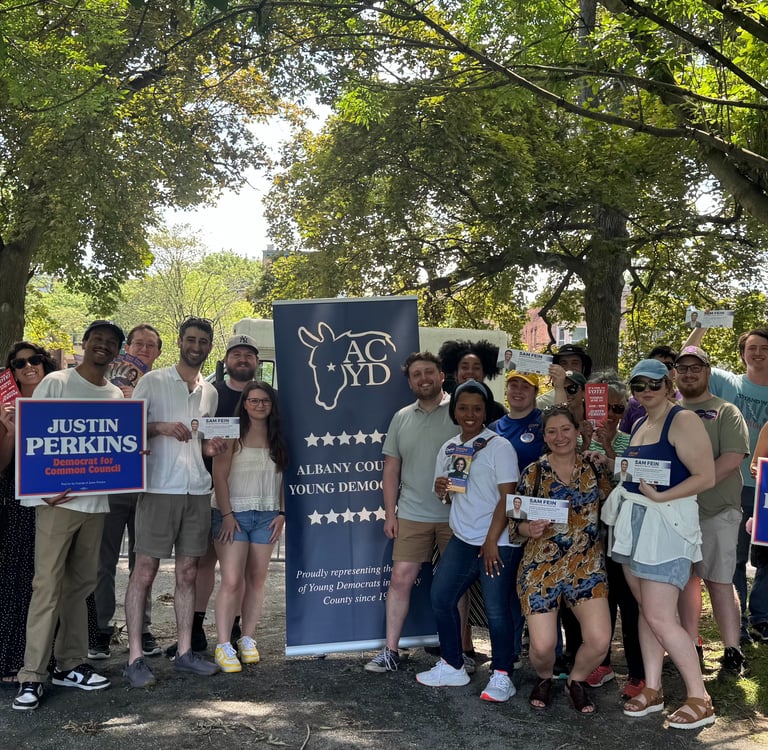Candidates endorsed by ACYD receive access to the organizing strength of our chapter, including the support of our members and Executive Board for canvass launches, days of action, and other campaign efforts, as well as amplification through our communications platforms. An ACYD endorsement is widely recognized as a meaningful show of grassroots support, and our backing has helped elect numerous candidates at the local, state, and federal level, making it both a practical resource and a prestigious signal of credibility among young Democrats across Albany County.